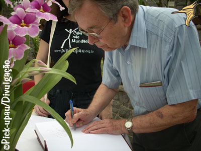 de São Paulo, e genro de Hoehne, assina exemplar. |