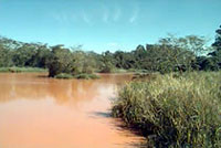 de lama avermelhada, que atingiu o córrego