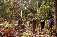 A equipe entrou numa área de mata