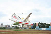 a réplica do avião, que, no