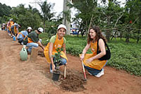 plantando a sua primeira árvore. Ela,
