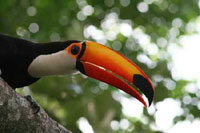 Ramphastos toco, tem o maior bico proporcional ao