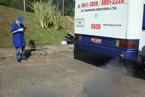 com o veículo parado, direto do escapamento.