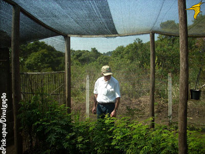 Oliveira Junior, observa espécies no viveiro.